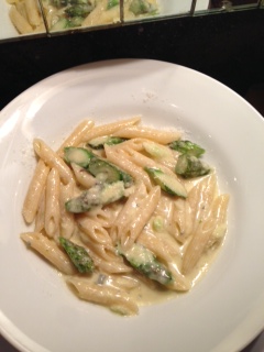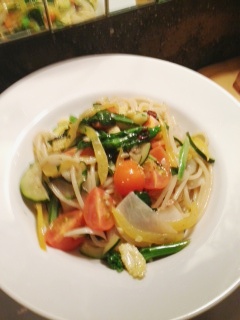 トロフィエという粉と水だけでうったもちもちした生パスタです。アサリと菜の花、